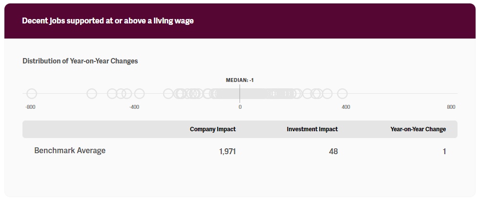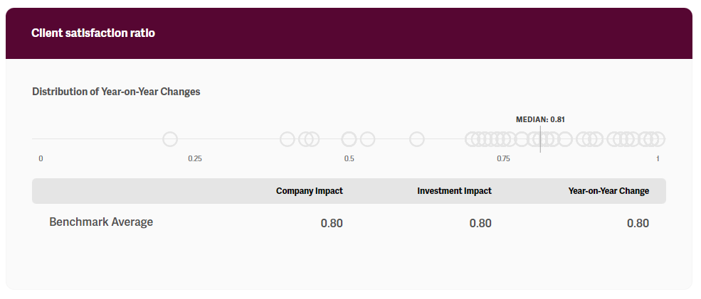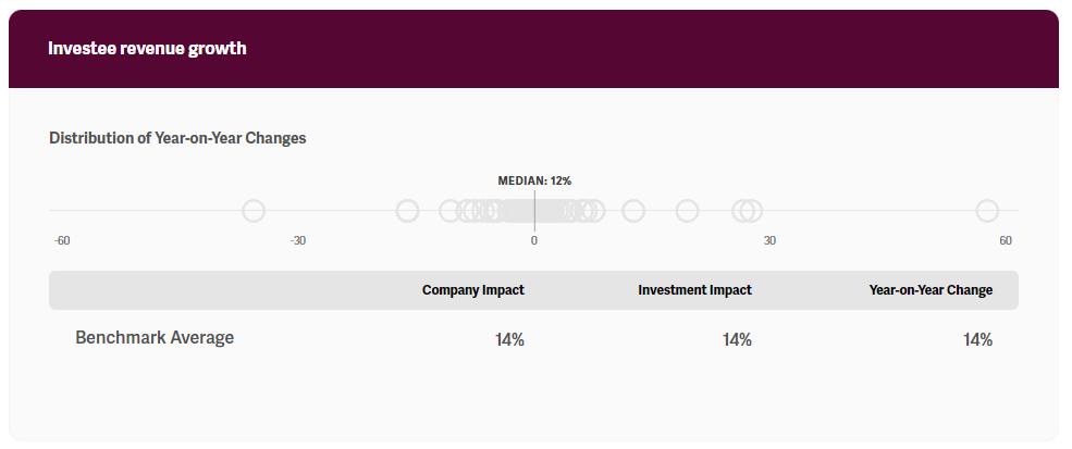 Each KPI presented in the benchmark offers four impact performance figures to reflect nuanced angles of impact performance. Figures are calculated as follows: