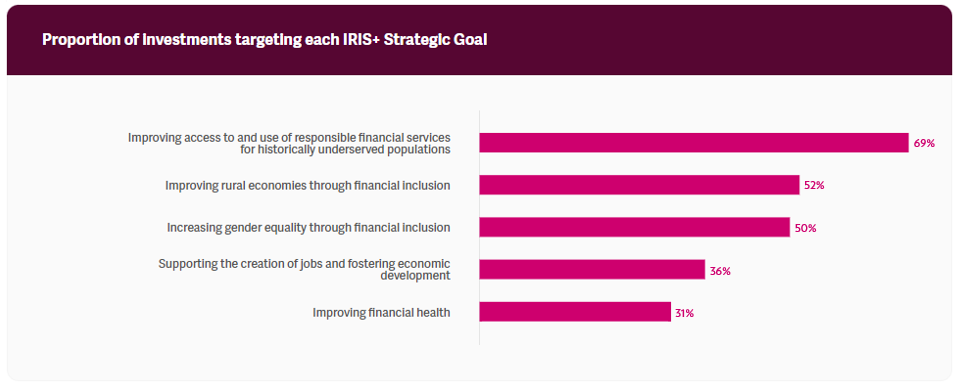 Details on the benchmark's sample size and constitution can be found here. The GIIN will continue to expand the benchmark and welcomes investors to submit data for inclusion. If you would like to be represented, please submit your impact results for your financial inclusion investments here. Financial inclusion investments made with the intention to generate measurable social and/or environmental returns alongside a financial return and for which capital, engagement, or investment terms are used to positively influence targeted impact results have been included.